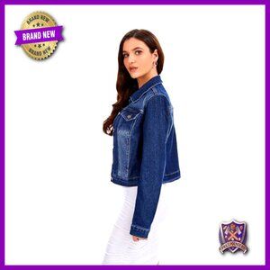 Brand new with tags and in flawless condition — this classic cropped denim jacket delivers a fitted, versatile look perfect for office wear, casual outings, or weekend adventures. The stretchy fabric is soft, comfortable, and designed for easy movement.