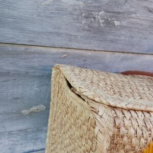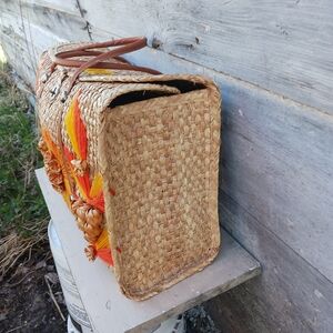 It's a vintage Woven Beach style of Tote with 3D Flowers. It does have signs of wear on the corners, and it's missing a flower on the front. See photos for the condition and measurements
