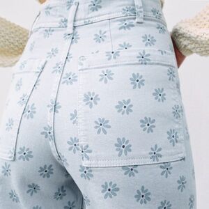 Stylish high rise jeans. Light blue with floral pattern. Perfect for casual wear.