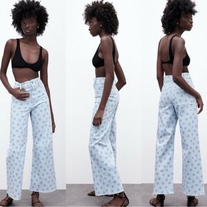 Zara Light Blue Marine Floral High Rise Jeans size 6
