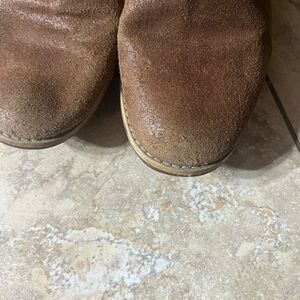 Stylish brown leather tall boots with detailed stitching. In great condition. Light wear on the toes. Sole have not wear. Size:7.5