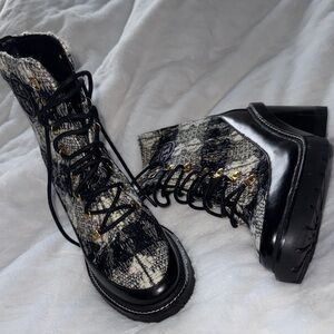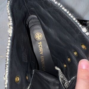 Tory Burch Miller wool lug sole lace-up heeled boots in never worn condition.