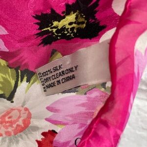 Oscar by Oscar De La Renta Pink & Black Floral 100% Silk Vintage Scarf