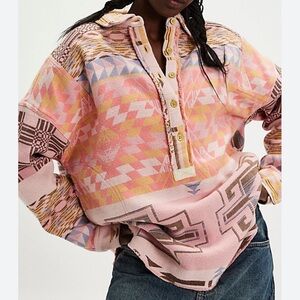 We the free Arizona sky pullover lemon combo printed shacket sweatshirt