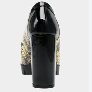 Step into this season's trends with ADELYN plaid heel loafers. These shoes feature an all-over rhinestone upper in a plaid print pattern.