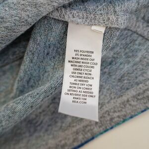 Kim Rogers PM Petite Teal Blue Rhinestone Scoop Neck Scrun 3/4 Sleeve Blouse Top Polyester Spandex Geometric Floral