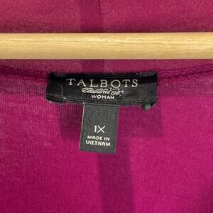 TALBOTS Tie V Neck Top Short Sleeve Jersey Knit Magenta Purple Size 1X Plus