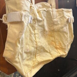 This my interpretation: An LLB ZIP TOP POCKET boat & tote sourced in New England, washed & tousled thru the salt waters of Cape Cod until perfectly soft & perfectly patina’d. it’s AWESOME. (it almost has an overall sun yellow tint, i tried to capture it in the photos but it’s difficult)