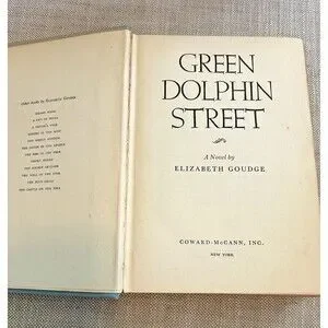 "Green Dolphin Street" by Elizabeth Goudge is a vintage hardcover book published in 1944 by Coward-McCain Inc. This narrative, set in the 19th century, tells the story of two sisters in the Channel Islands who both fall in love with the same man.