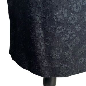 Liz Claiborne Petites dress, vintage sheath dress, Y2K shimmer dress, 90s cocktail dress, petite little black dress, metallic floral party dress, retro evening dress, holiday party outfit, vintage formal wear, sleeveless cocktail dress, shimmer floral sheath, petite retro dress, elegant evening style, classic LBD with shimmer, 1990s Liz Claiborne dress, glam retro outfit, timeless sheath dress, vintage night out dress, metallic shimmer cocktail dress, black floral shimmer dress