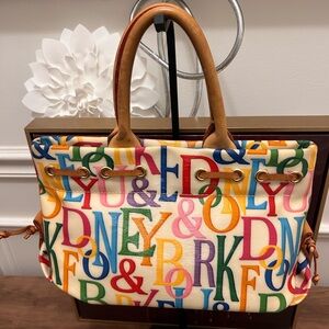 Rainbow Multicolor Signature Tassel Tote Bag. It is part of the brand's vintage Y2K "Retro Grafica" or "Shiny It" collection, known for its playful and vibrant aesthetic. CALLOUTS: Inside needs cleaning