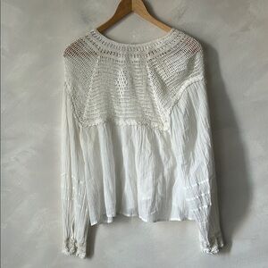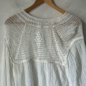 Free People White Mesh Net Open Top Long Sleeve Peasant Top size XS