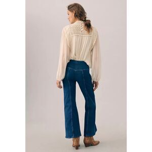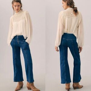 Anthropologie Pilcro Seamed Mid-Rise Crop Flare Jeans Wide Leg Cowgirl Rodeo