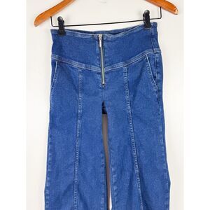 Anthropologie Pilcro Sz 25 Seamed Mid-Rise Crop Flare Jeans Wide Leg Blue. Condition is Pre-owned - Excellent.
