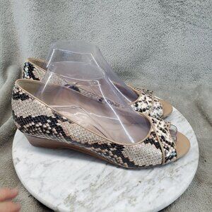 Cole Haan Shoes Womens Size 9 Snakeskin Leather Manmade Peep Toe Wedge