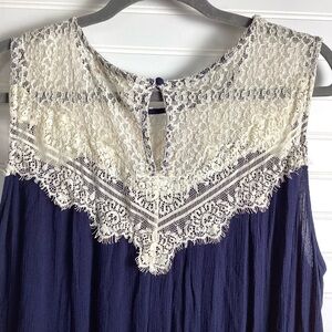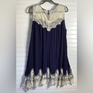 Umgee Sleeveless Lace Mini Dress cream and Blue Size 2XL