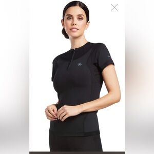 Ariat Ascent 1/4 zip Baselayer Women's Blk Short Sleeve Compression top MED NEW