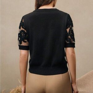 This elegant black floral lace top is perfect for any occasion. Its intricate design adds a touch of sophistication to your wardrobe.