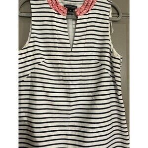 Jessica Howard Blue and white stripe sleeveless dress pink crochet trim Sz 14