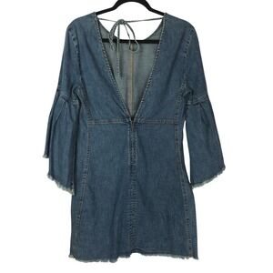We the Free Womens Reckless Life Denim Long Sleeve Open Back Dress 6 Western