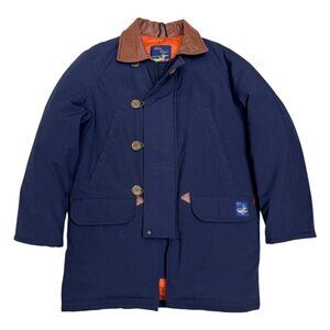 SNOW GOOSE VINTAGE Canada Goose Luxury DOWN FILL Winter Parka Coat  Mens Small  Great condition  Vintage SNOW GOOSE, now known as "Canada Goose"  Blue / orange  Duck down & feather fill insulation  Full zip  4 front pockets  Interior pocket  Leather trim  Polyester / cotton  Made in Canada  Pit to pit 23"  Length 32"  Sleeve 24"  #canada #goose #winter #vintage #parka  Embrace the elements with the Snow Goose Vintage Canada Goose Luxury Down Fill Winter Parka Coat, tailored to fit a men's small. Crafted with meticulous attention to detail, this coat features a resilient polyester outer shell that is both water and wind-resistant. Its solid blue colour offers a versatile look that complements any outfit, ideal for business, casual wear, or travel. This mid-length parka boasts a full zip closure and is insulated with the ultimate in down fill comfort, ensuring warmth during the brisk fall, spring, and winter seasons. Proudly originating from Canada, this vintage piece marries timeless style with functional design, providing a regular fit that allows for layering and ease of movement.