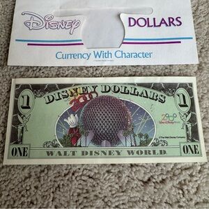 Good to excellent condition. Slight curvy at edges, shown in pics, otherwise excellent condition. Comes with Disney Dollar envelope.