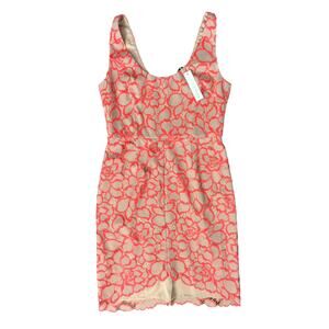 Trina Turk Kruze Tan Pink Sleeveless Floral Lace Hi-Lo Sheath Dress Sz 8 NEW Tag
