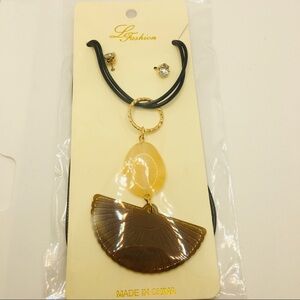 NECKLACE SHELL LIKE IN TOFFEE ON CORD! It’s great for every day!! BRAND NEW IN PACKAGING! Also CZ EARRINGS INCLUDED!!