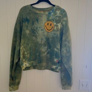 Aviator Nation Green Tie-Dye Smiley Sweater