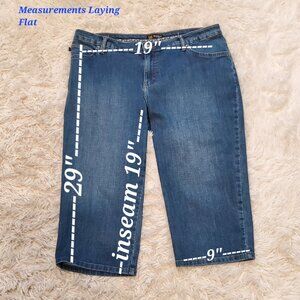 Two Pair: 1 light wash + 1 dark wash size 16 capri pants