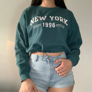Get a taste of β90s nostalgia with this StreetWear Society crop top sweater in a cool teal color. With its soft lining and elastic pull to tighten at the waist, it offers both comfort and style. While itβs pre-loved and may show some signs of wear, itβs the perfect choice for those seeking a vintage look. The front proudly displays βNew York 1996β in white, adding a touch of retro charm.