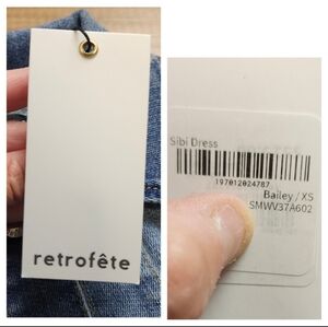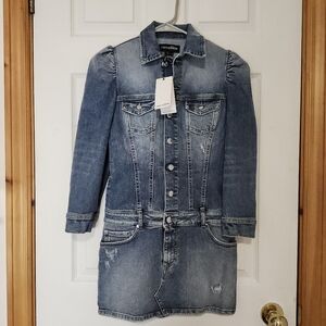 Retrofete Sibi dress Bailey distressed denim mini jean puff sleeves women's xs