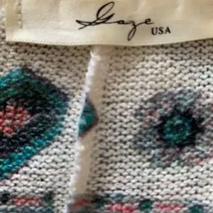Gaze Women’s XS Sweater Elephant Motif Short Sleeve Cream Aqua made in USA