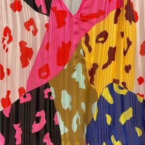 Vibrant and stylish, this dress features a colorful pattern perfect for any occasion. The mix of pink, blue, black, and yellow creates a bold statement. Ideal for those who love to stand out.