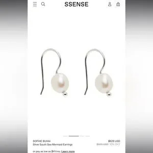 Chic and timeless pearl earrings from LA jewelry designer Sophie Buhai. Features a sleek silver hook. Perfect for any occasion. Worn a handful of times - excellent, like-new condition!