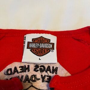 Bright red Harley Davidson vintage nags head North Carolina three quarter zip long sleeved tee shirt large. USA America Patriotic