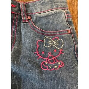 Keywords: Hello Kitty, Denim, Flare Jeans, Girls Jeans, Rhinestone Applique, Pink Stitching, Heart Pockets, Kids Fashion, Character Jeans, Playful Style, Casual Wear, Sanrio, Bootcut