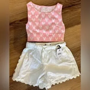 Top has been worn, bottoms new with tags. I’d recommend them as a beach cover up as they are quite sheer