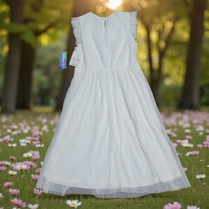 This elegant kids dress features a beautiful lace design, perfect for special occasions. The white color adds a touch of sophistication.