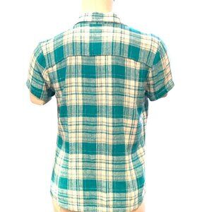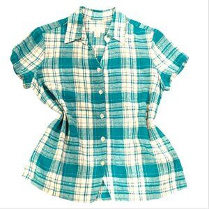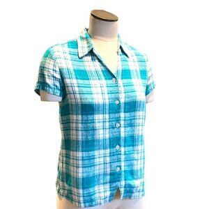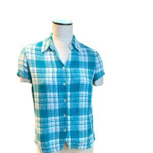 Christopher & Banks Linen Blend Plaid Short Sleeve Button Up Top Sz S #44F