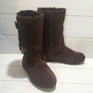 Tory Burch Brown Shearling And Suede Midcalf Flat Womens Boots Size 8.5