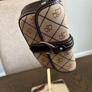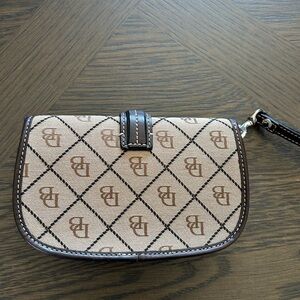 Dooney & Bourke Vintage Signature Canvas & Leather Flap Wristlet EUC