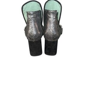 Anthropologie Paoli Arcana metallic Silver Ankle Boots Buckle velvet block heel womens size 8 BEAUTIFUL
