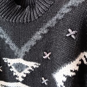 Elegant gray knit sweater by Marisa Christina. Handcrafted for comfort.