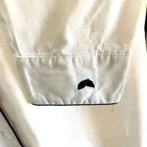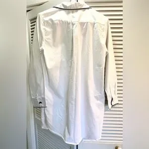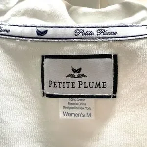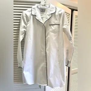 Petite Plume Women's White 100% Cotton Button-Down Nightshirt Navy Piping M