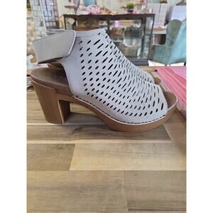 This is a Dansko Danae block heel sandal in oyster milled nubuck leather Size 39
