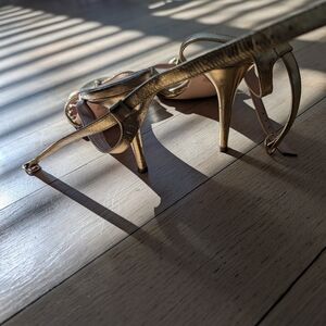 Chic metallic gold sandals with elegant straps. Perfect for adding sophistication to any look.