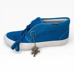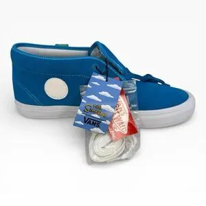 The Vans x The Simpsons Bart Chukka in Mens Size 10 features a unique design with Bart Simpson as the character. The shoe is a multi-color athletic style sneaker made of suede with a blue color scheme. Released in 2020, this Vans Chukka model combines elements from both worlds of fashion and comedy, making it a standout addition to any sneaker collection. Perfect for fans of The Simpsons or those looking for a fun and stylish shoe option.