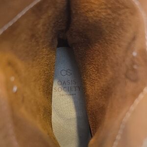 Oasis Society Dalton Faux Suede Pointed Toe Block Heel Ankle Boots Tan Size 6.5
