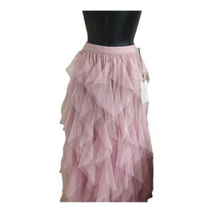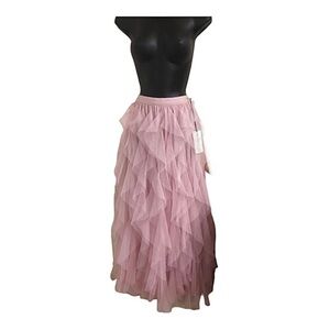 Beautiful light pink ruffled chiffon princess tutu banded waist maxi skirt size large new